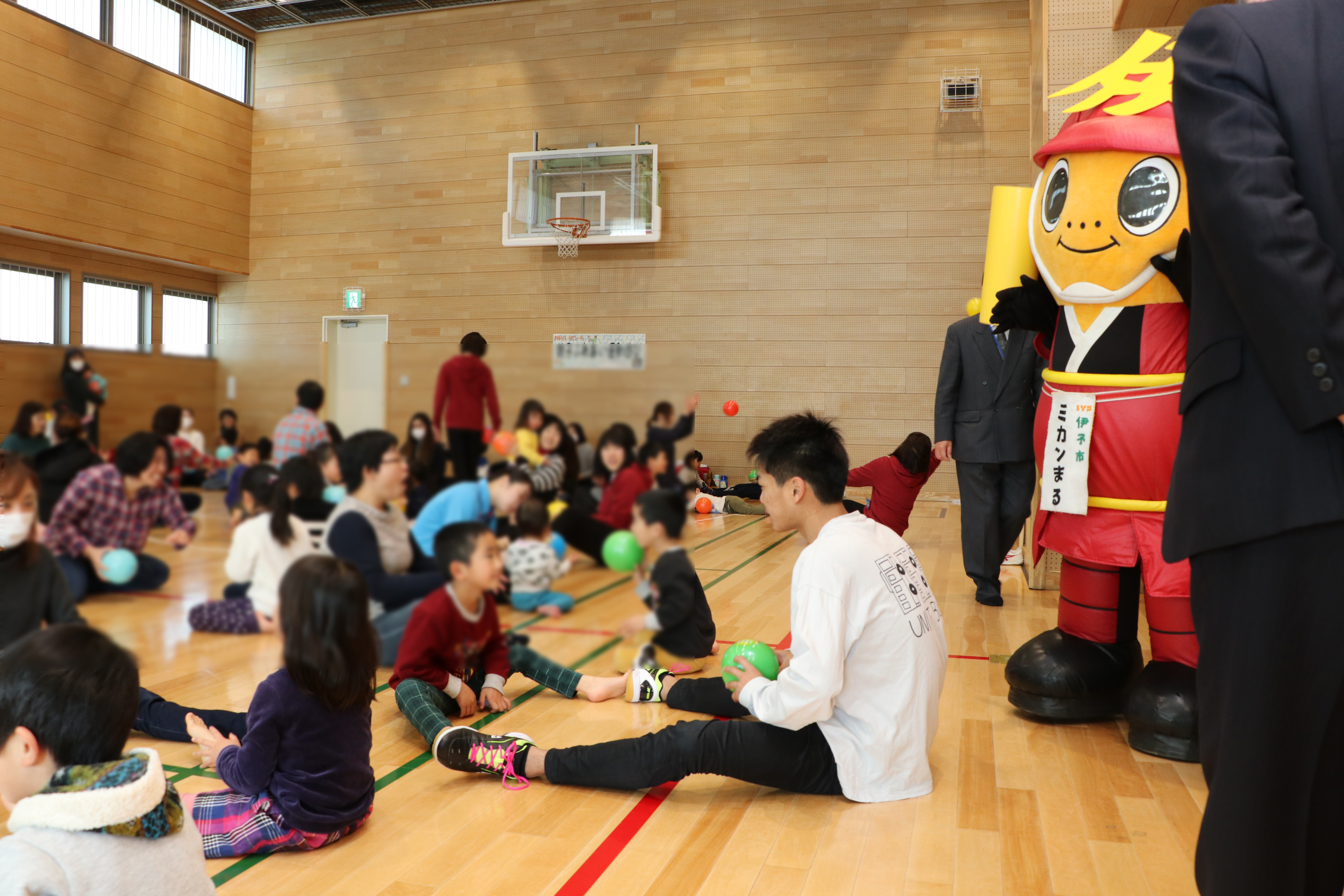このイベントは伊予市との連携協定の一環で開催されたイベントで、フォーラムの最初に保育学科長 大上紋子教授 指導の「親子ふれあい運動遊び(手遊び・ボール遊び)」があり、保育学科の学生も子どもたちと一緒に活動し、約100名の親子の方に楽しい時間を過ごしていただきました。