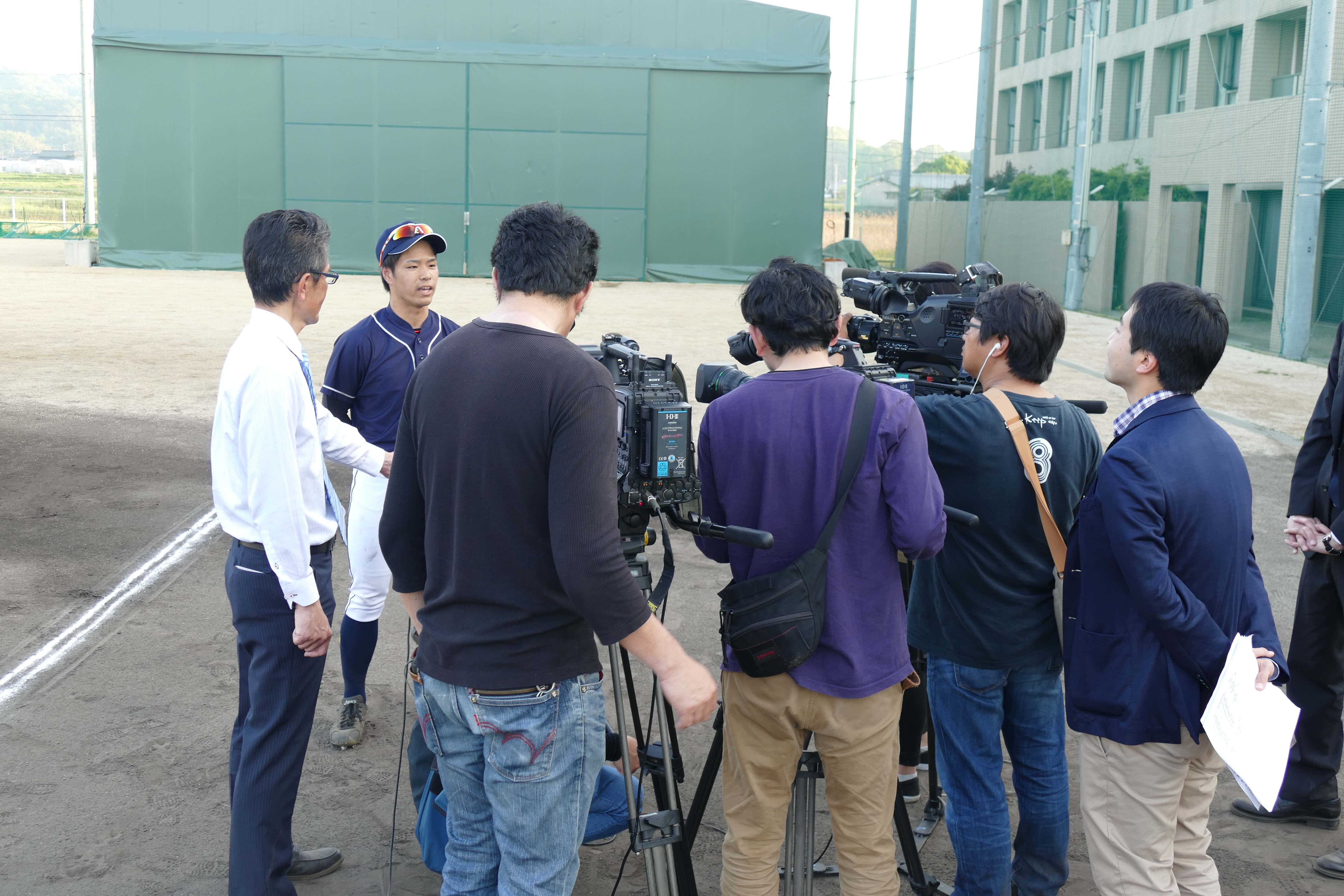 多くの取材陣に囲まれ、選手も緊張していた様子でしたが、練習が始まるとハツラツとしたプレーを見せていました。四国を代表する大学を目指して、日々前進していく彼らの応援をどうぞよろしくお願いいたします。