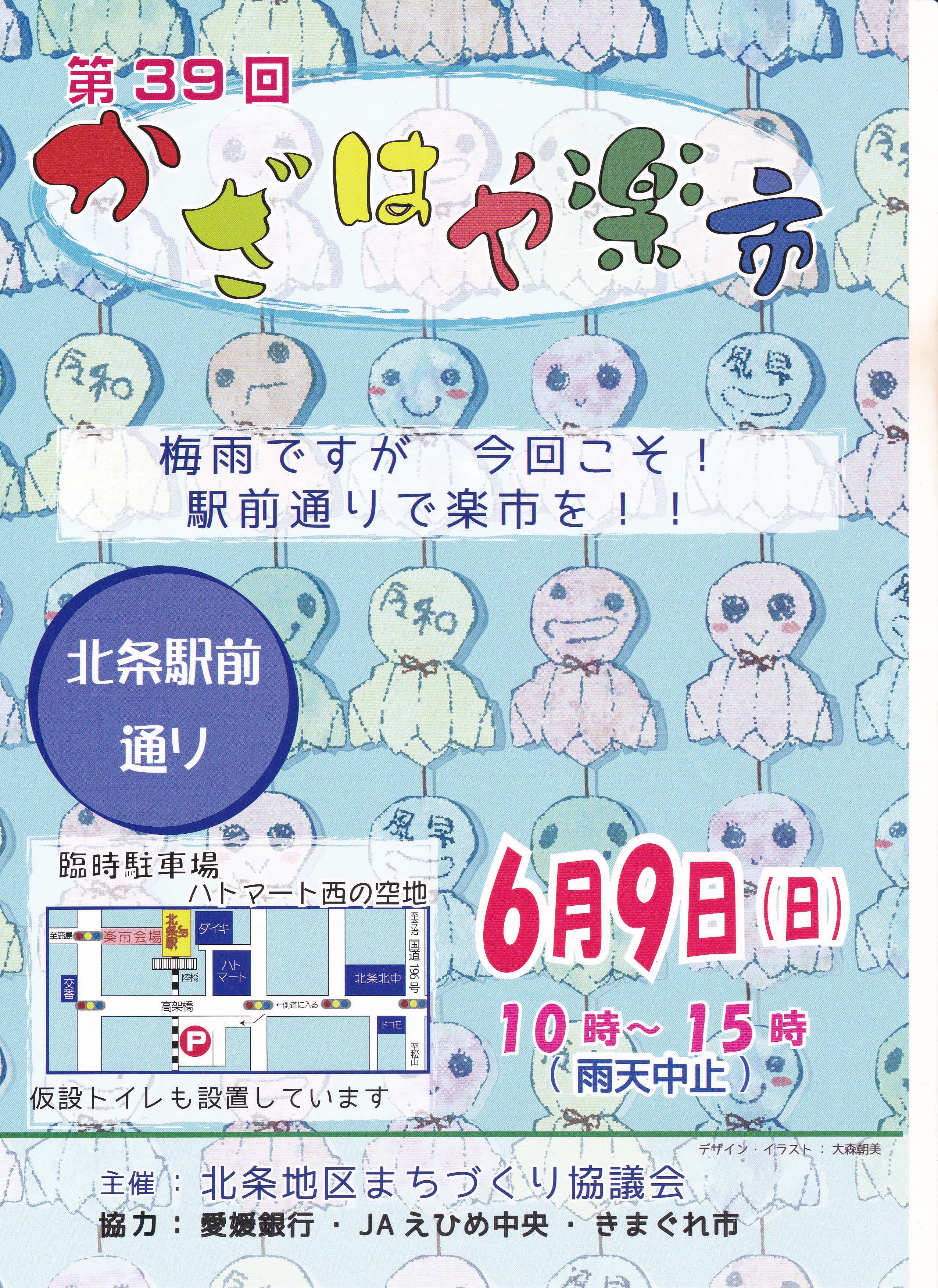 6月9日(日)JR伊予北条駅前の道路を会場に「かざはや楽市(北条地区まちづくり協議会主催)」が開催されました。