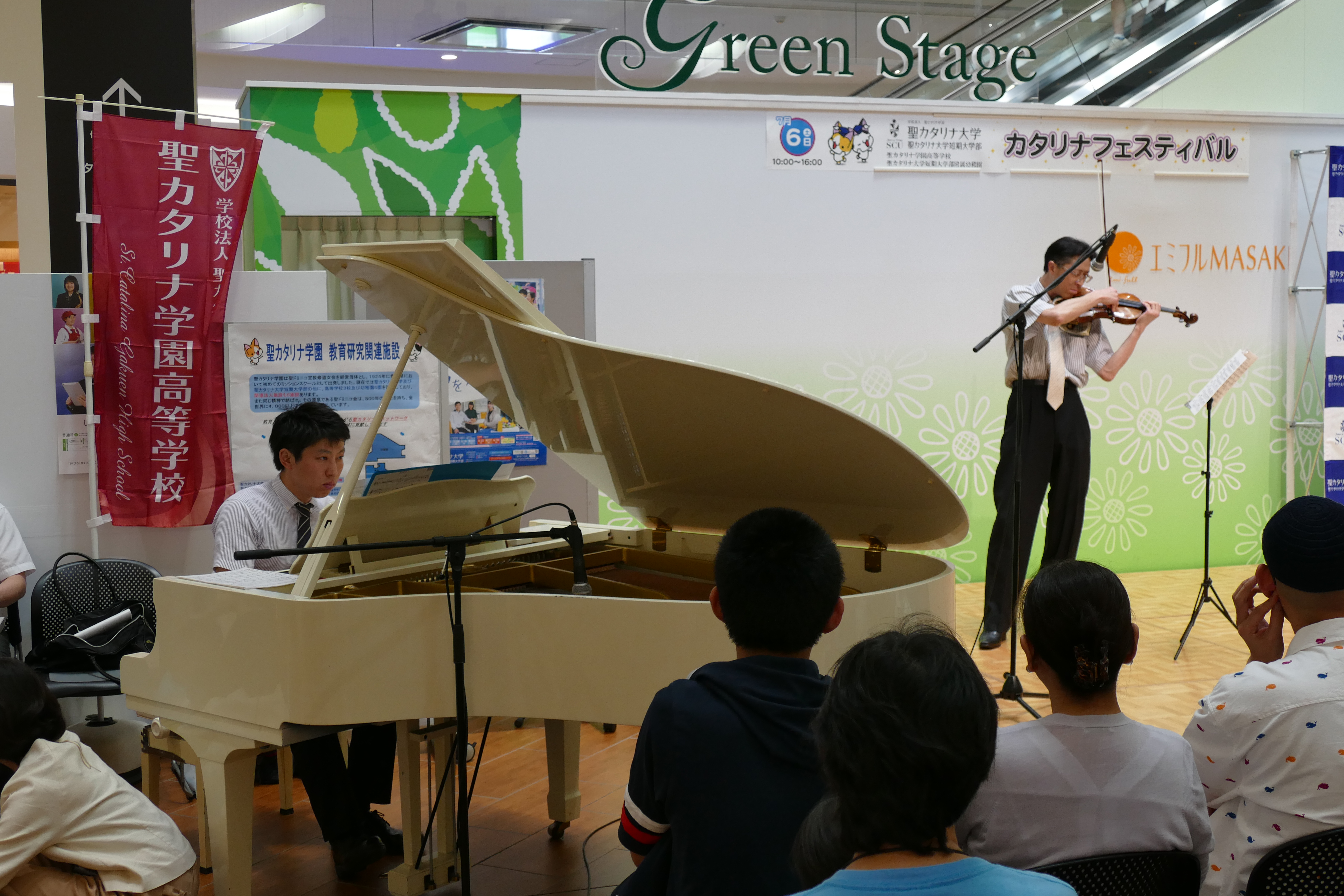 聖カタリナ学園の聖カタリナ大学・聖カタリナ大学短期大学部・聖カタリナ学園高校・聖カタリナ大学短期大学部附属幼稚園の学生・生徒・園児によるステージ発表、大学・高校の学科別体験コーナーや学校紹介を実施しました。