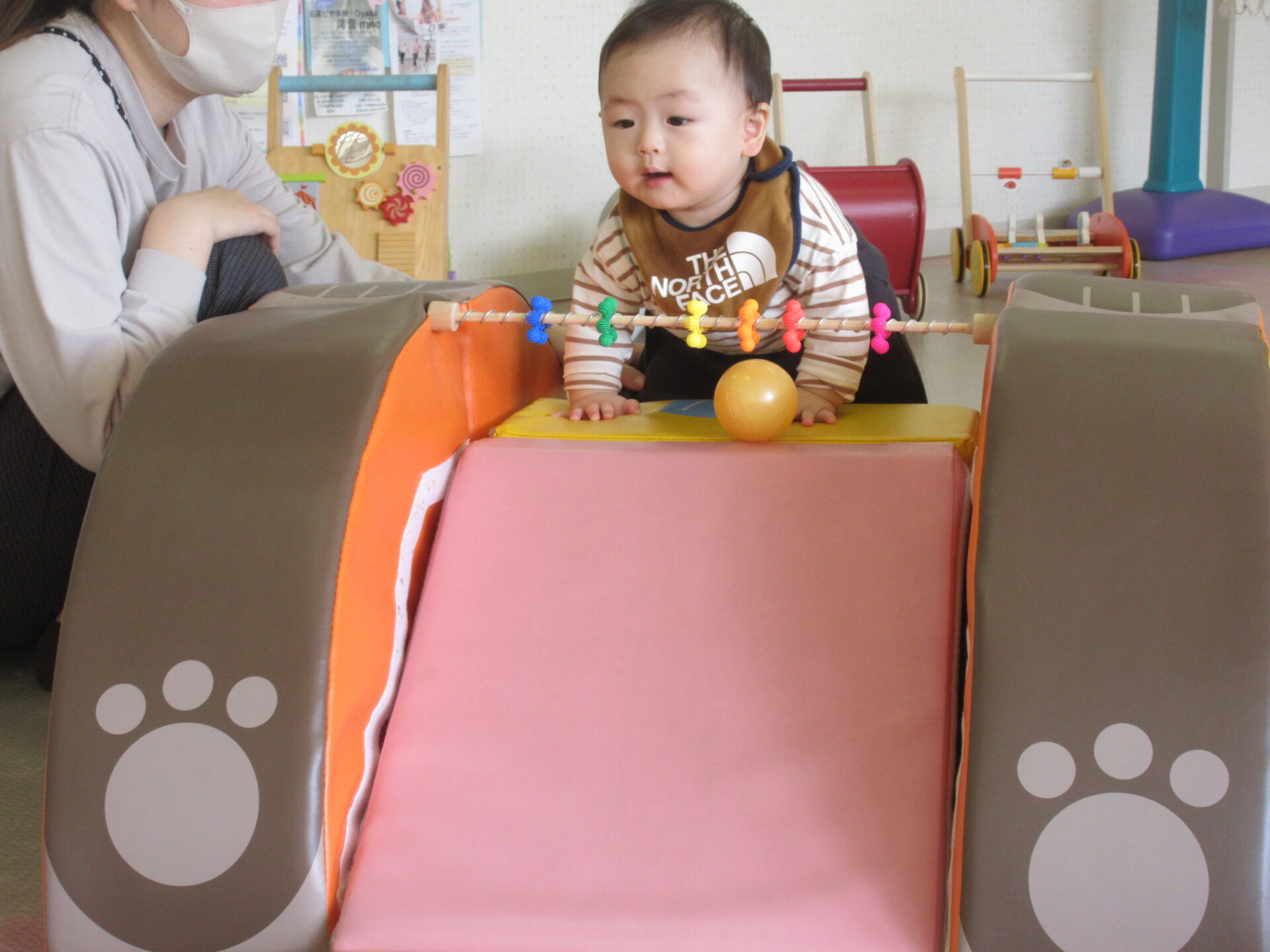今回、ぽけっとのママでもある田渕愛さんを講師にお招きして「ママのヨガ講座」を開催しました。普段育児に家事に忙しく、ゆっくり体を動かす時間を取ることも難しいママたちにご褒美の時間を♪ということで、ぽけっとのお部屋でお子さんと一緒に参加していただきました。ママがヨガをしている間、お子さんたちはスタッフとあそびながらいい子で待ってくれていましたね。ママたちも、安心してヨガに取り組むことができたかな?田渕さんの優しい声に癒されながら、深い呼吸を意識したり、体をゆっくり伸ばしたりと、心身ともにリラックスの時間を過ごしていただきました。ヨガを終えた後、「呼吸が深くなった気がする!」と言ってくださるママの声も♪子育て中は、子どものことが最優先。休む間もなく忙しく日々が過ぎていきますが、時には自分に優しく、ママのための時間を取ることができたら、またきっとお子さんと笑顔で向き合うことができますよ♪また、ぽけっとでママのための時間を過ごしましょう。