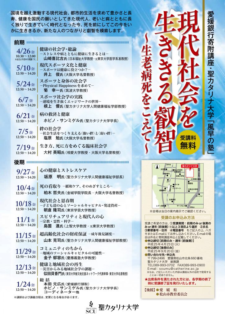 平成25年度 愛媛銀行寄附講座・聖カタリナ大学「風早の塾」現代社会を生ききる叡智〜生老病死をこえて〜