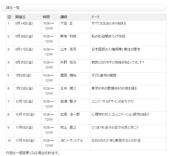 聖カタリナ大学と松山市社会福祉協議会は、昨年度に引き続き共同企画プロジェクトとして「まつやまシニアカレッジ」を開講しています。 この講座は、松山市在住の60歳以上の方を対象に、高齢者向けのカリキュラムを用意し、知識習得意欲を向上させる機会をもっていただくとともに、大学生活の一端を体験していただこうというものです。