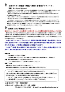 公開オルガン体験会・ミニ演奏会 演奏・指導者プロフィール