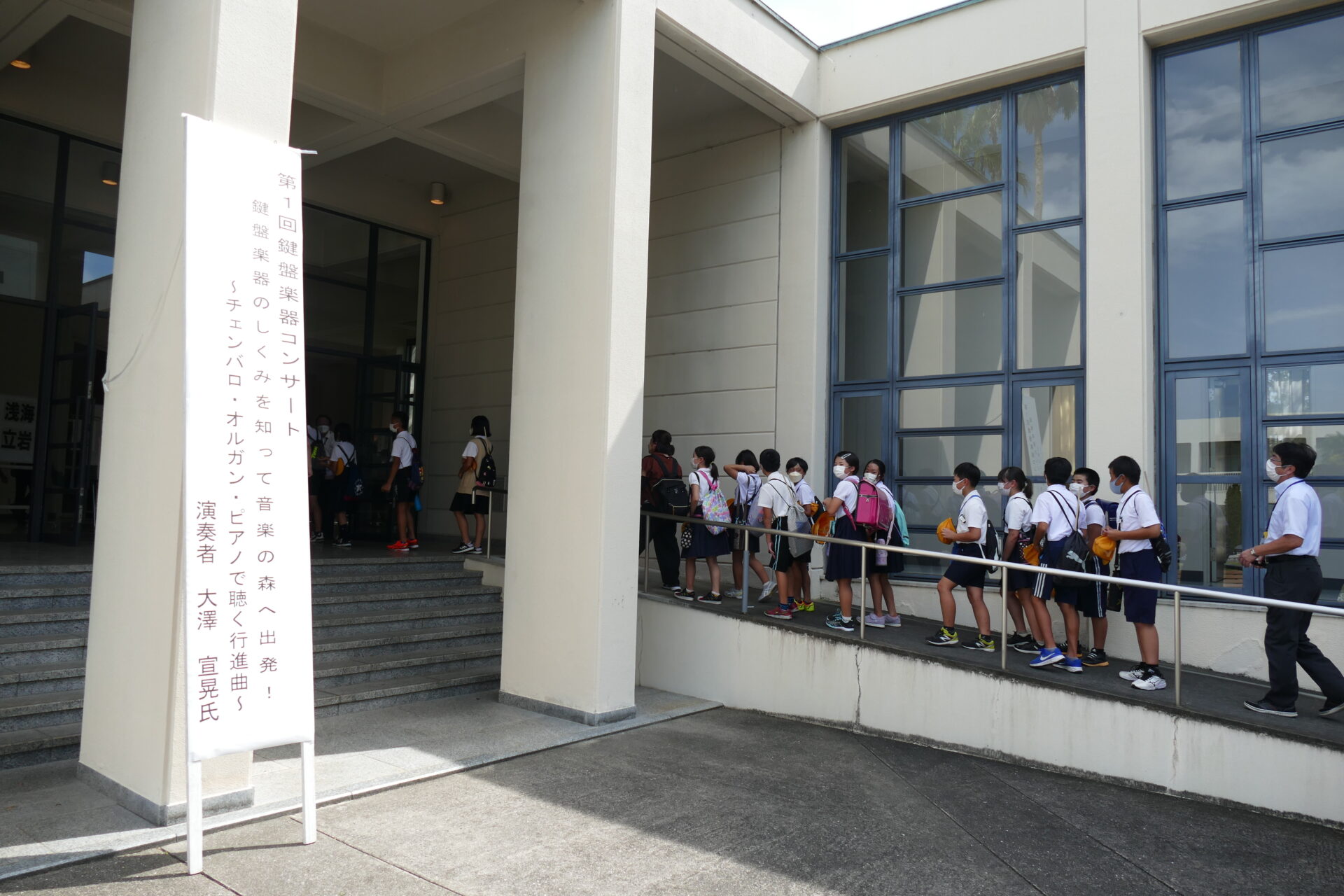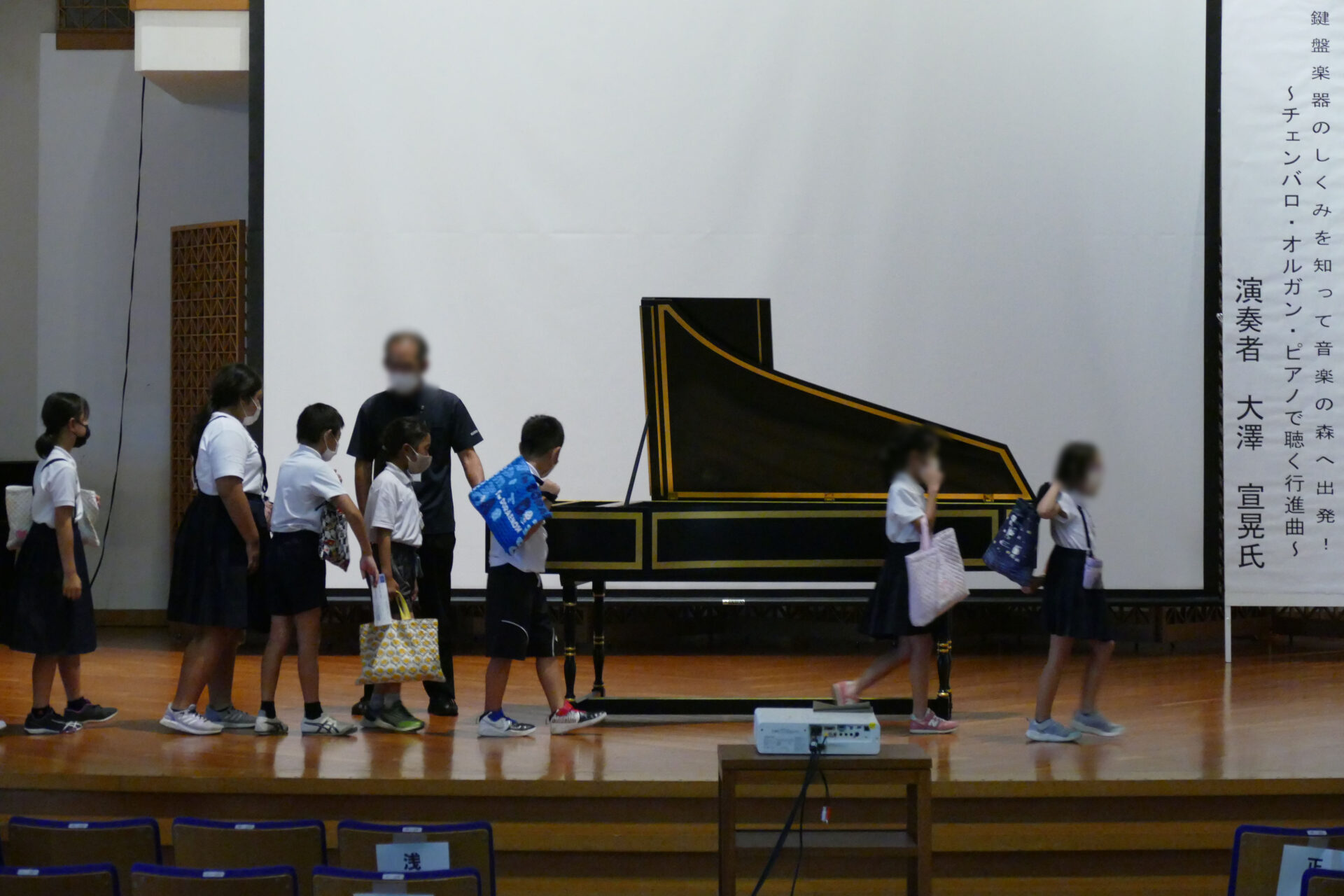 コンサートでは、演奏者 大澤 宣晃氏をお招きし、チェンバロ・パイプオルガン・ピアノの演奏、各楽器の音の出る仕組み、時代背景などの解説をしていただきました。当日は、北条地域の小学生 約320名(浅海、立岩、難波、正岡、北条、河野、粟井小学校)が参加し、音楽への興味・関心を高めることにつながるイベントとなりました。