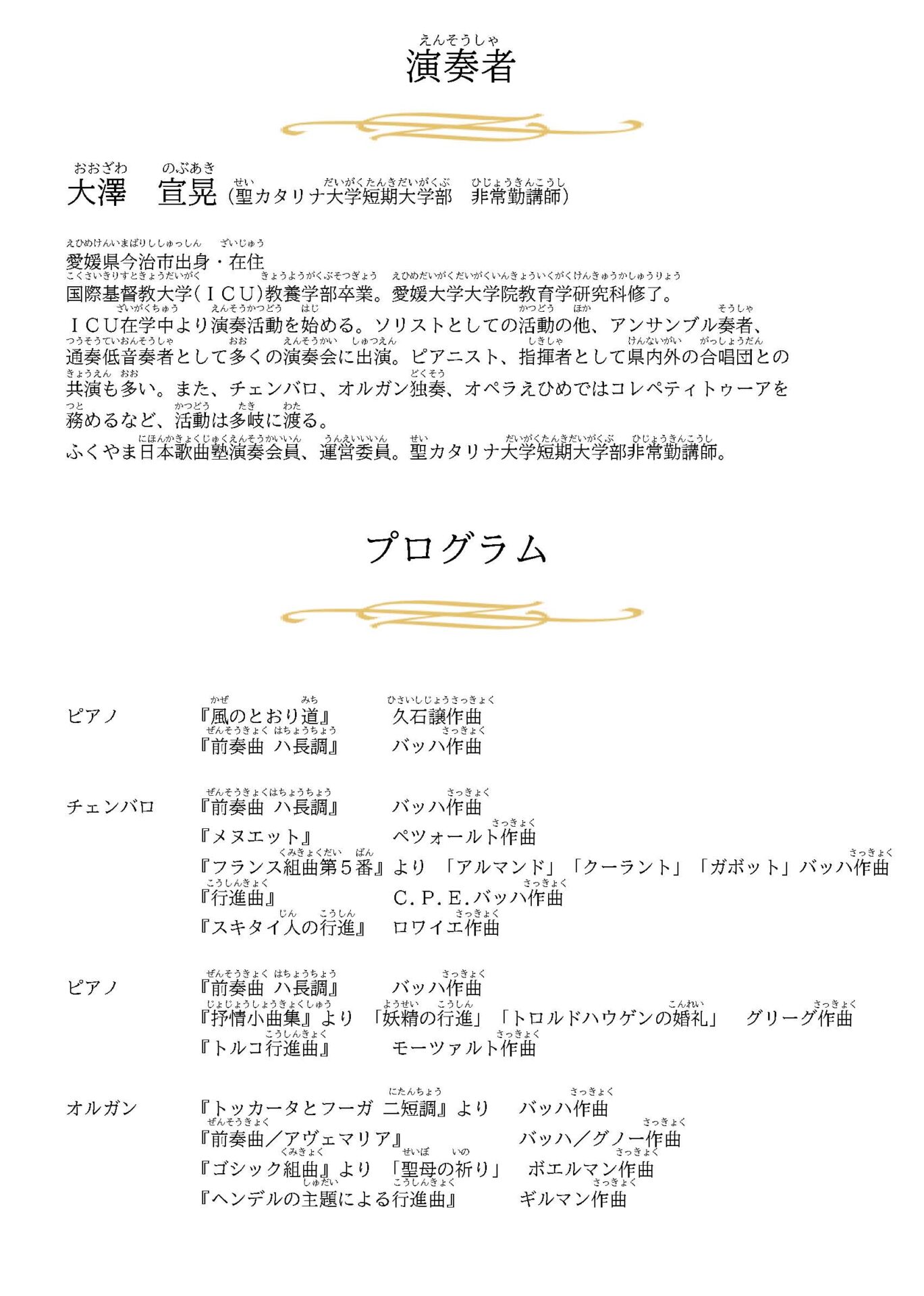 9月13日(火)、聖カタリナホールで第1回鍵盤楽器コンサートを開催しました。