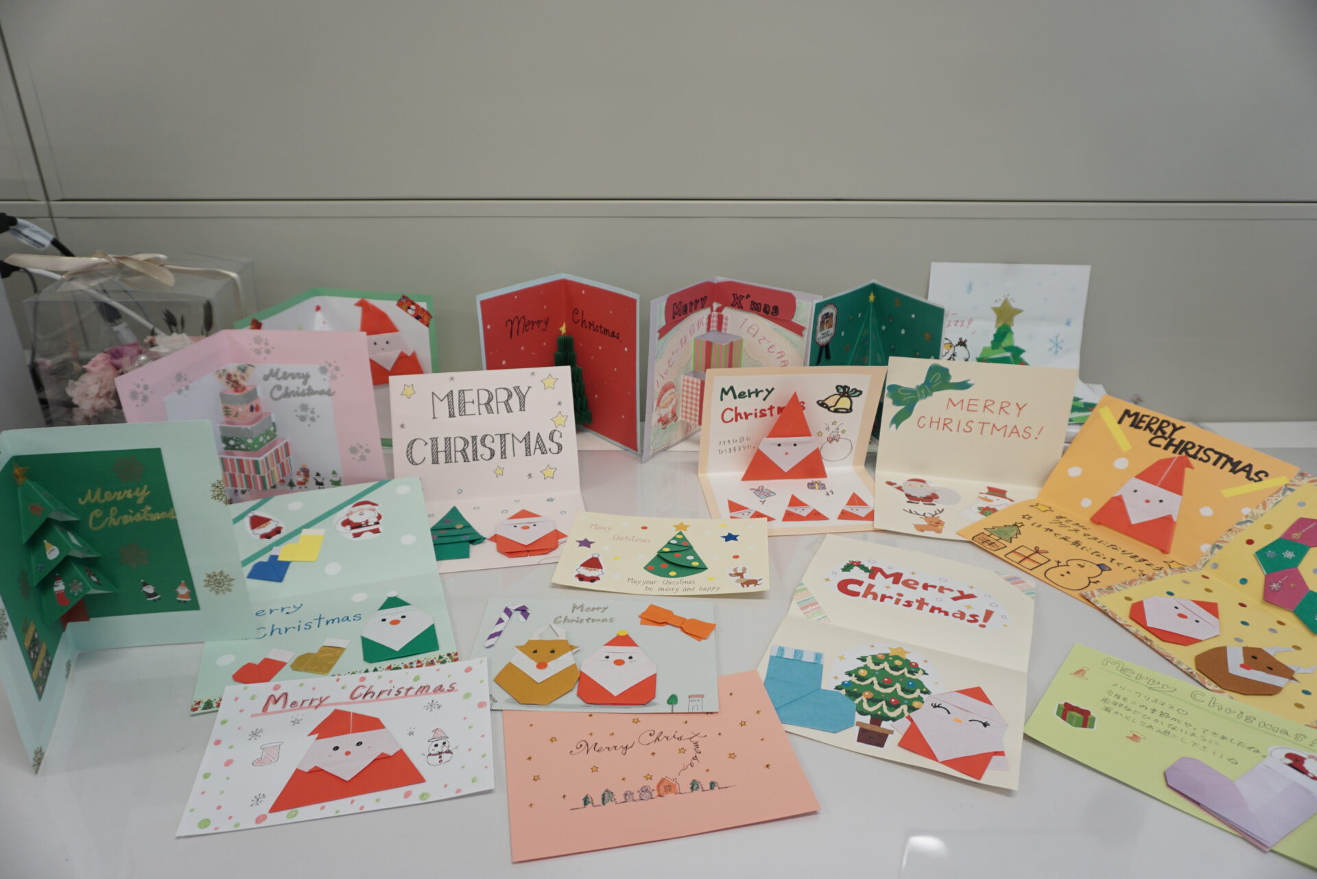 12月9日(金)、松山赤十字病院にてクリスマスカード贈呈式が行われ、看護学科を代表して4年生2名が参加しました。 協力協定を結んでいる松山赤十字病院で療養されている全ての患者さんに届くように、看護学科の学生が心を込めて593枚のクリスマスカードを作成しました。 クリスマスを感じていただき、少しでも入院生活の癒しになっていただけると幸いです。